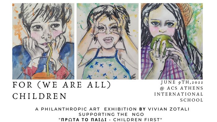 Η καλλιτέχνιδα Βίβιαν Ζώταλη και η οργάνωση Πρώτα το Παιδί διοργανώνουν φιλανθρωπική εικαστική έκθεση, που θα πραγματοποιηθεί την Πέμπτη 9 Ιουνίου 2022 από τις 18:30 έως τις 22.30, στο Theater Lobby του ACS Athens.