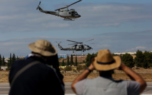 Ελι­κό­πτε­ρα της Ελλη­νι­κής Πολε­μι­κης Αερο­πο­ρί­ας πραγ­μα­το­ποιούν επί­δει­ξη συμ­με­τέ­χο­ντας στο Athens Flying Week στην Αερο­πο­ρι­κή Βάση της Τανά­γρας, το Σάβ­βα­το 21 Σεπτεμ­βρί­ου 2019. Η μεγα­λύ­τε­ρη αερο­πο­ρι­κή γιορ­τή της Ελλά­δας, η Athens Flying Week (AFW) Tanagra International Air Show 2019, επι­στρέ­φει για 8η συνε­χό­με­νη χρο­νιά στις 21 και 22 Σεπτεμ­βρί­ου, στην Αερο­πο­ρι­κή Βάση Τανά­γρας. ΑΠΕ-ΜΠΕ/ΑΠΕ-ΜΠΕ/ΟΡΕΣΤΗΣ ΠΑΝΑΓΙΩΤΟΥ