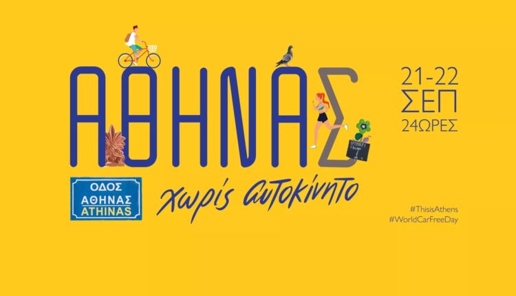 Ο Δήμος Αθηναίων γιορτάζει την Παγκόσμια Ημέρα Χωρίς Αυτοκίνητο (22 Σεπτεμβρίου) με μια μεγάλη ανοιχτή εκδήλωση στην οδό Αθηνάς. Για 24 ώρες, από το βράδυ του Σαββάτου 20 Σεπτεμβρίου έως το βράδυ της Κυριακής 21 Σεπτεμβρίου, η πολυσύχναστη οδός ‑από το ύψος της Ευριπίδου μέχρι το Μοναστηράκι- απαλλαγμένη από μηχανοκίνητα οχήματα, θα γεμίσει με δράσεις πολιτισμού, εκπαίδευσης, ψυχαγωγίας και δημιουργίας, που θα αναδείξουν τον βιώσιμο χαρακτήρα του προορισμού…