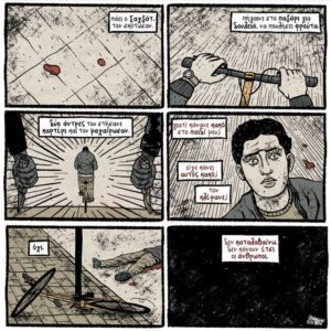 Την εικονοποίηση των επιθέσεων ανέλαβαν 25 δημιουργοί κόμικς και σκιτσογράφοι, οι οποίοι κλήθηκαν να εμπνευστούν τα σκίτσα τους από τις ιστορίες πίσω από τις επιθέσεις. Τα 50 έργα κόμικς που δημιούργησαν παρουσιάζονται σε έκθεση, που εγκαινιάστηκε χτες το βράδυ και θα διαρκέσει μέχρι την Κυριακή στην Τεχνόπολη του Δήμου Αθηναίων. Τα έργα υπογράφουν οι Αδαμοπούλου, Αναστασίου, Βαβαγιάννης, Γιακουμάκης, Δερβενιώτης, Θεοδωροπούλου, Καραγεωργίου, Καραμπάλιος, Κεφαλάς, Κουντούρης, Μικάλεφ, Μπότσος, Νικολαΐδου, Οθωναίου, Πετρόπουλος, Πέτρου, Χαλκιάς, Aspallax, Bratimoto, John Antono, No Budget Epics, Panagos, PanPan, Piotr και Tasmar.