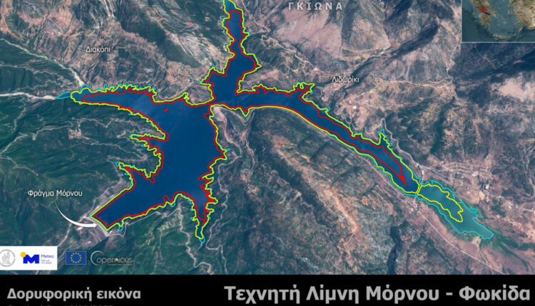 Δορυφορικές μετρήσεις της έκτασης της τεχνητής λίμνης του Μόρνου