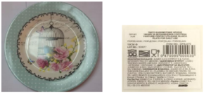 Πρό­κει­ται για πιά­το καθη­με­ρι­νής χρή­σης από πορ­σε­λά­νη με διά­με­τρο 19 cm, προ­έ­λευ­σης Κίνας, με κωδι­κό προ­ϊ­ό­ντος ITEMNO:DFB-075, αριθ­μό παρ­τί­δας 16HKF7 και αριθ­μό γραμ­μο­κώ­δι­κα 0470095000030.