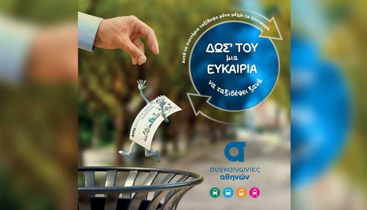 Με το σύνθημα «Δωσ’ του μία ευκαιρία να ταξιδέψει ξανά» και «πρωταγωνιστή» το ίδιο το εισιτήριο, ξεκίνησε η καμπάνια του ομίλου ΟΑΣΑ, σε συνεργασία με τις θυγατρικές του ΣΤΑΣΥ, ΟΣΥ, για επαναφόρτιση του εισιτηρίου στο πλαίσιο του προγράμματος Βιώσιμης Αστικής Κινητικότητας των Συγκοινωνιών Αθηνών.….
