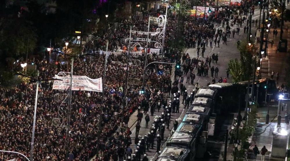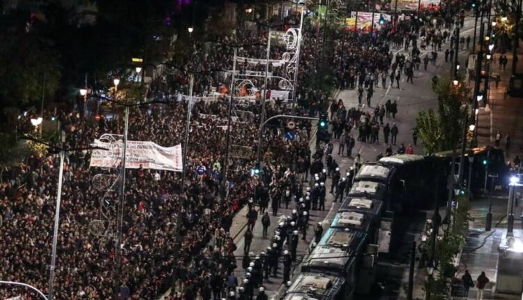 Η καθιερωμένη πορεία για την 52η επέτειο από την εξέγερση του Πολυτεχνείου βρίσκεται σε εξέλιξη, με την ιστορική αιματοβαμμένη σημαία να ηγείται της μεγάλης κινητοποίησης. Όπως κάθε χρόνο, η εκκίνηση έγινε από την Πατησίων, με κατεύθυνση την αμερικανική πρεσβεία, όπου κορυφώνονται οι εκδηλώσεις τιμής και μνήμης…
