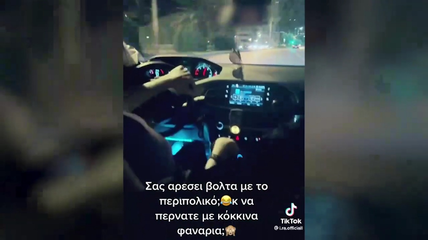 Στο βίντεο αποτυπώνεται το περιπολικό με δύο αστυνομικούς να περνά τα φανάρια με κόκκινο, έχοντας ανοιχτή τη σειρήνα αλλά και δύο γυναίκες στο πίσω κάθισμα.