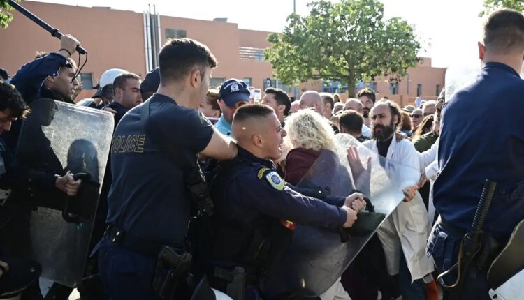 Ένταση έξω από το Αττικό νοσοκομείο κατά την επίσκεψη Μητσοτάκη και Γεωργιάδη