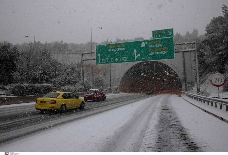Κακοκαιρία Φίλιππος: Με αλυσίδες η κίνηση στην Αθηνών-Λαμίας από τις Αφίδνες
