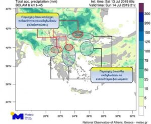 Κατά τη διάρ­κεια της Κυρια­κής οι καται­γί­δες θα επι­μεί­νουν στα βορειο­α­να­το­λι­κά τμή­μα­τα της χώρας και βαθ­μιαία θα επη­ρε­ά­σουν νησιω­τι­κά τμή­μα­τα του Ανα­το­λι­κού Αιγαί­ου. Παράλ­λη­λα, βρο­χές και καται­γί­δες θα εκδη­λω­θούν στα κεντρι­κά και ανα­το­λι­κά ηπει­ρω­τι­κά τμήματα.