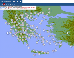 Θερμοκρασία: Από 24 έως 32 και στην Κρήτη τοπικά έως 36 βαθμούς Κελσίου.