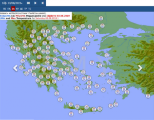 Θερμοκρασία: Από 22 έως 38 και κατά τόπους 39 βαθμούς Κελσίου.