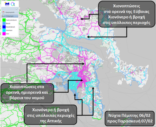 Κρύο και χιονόπτωση ήταν τα στοιχεία που επικράτησαν κατά τη διάρκεια της νύχτας στη Βόρεια Ελλάδα. Η Αττική και ιδιαίτερα τα βόρεια προάστια δέχθηκαν μεγάλες ποσότητες χιονιού έως και αργά το βράδυ της Πέμπτης, ενώ τη νύχτα επικράτησε το κρύο, ο παγετός και οι ισχυροί άνεμοι στις περισσότερες περιοχές.