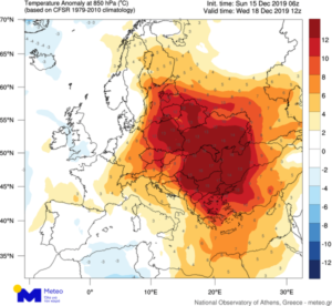 Η απόκλιση των θερμοκρασιών σε ύψος περί τα 1500μ πάνω από τη μέση στάθμη της θάλασσας προβλέπεται να φτάσει σε υψηλές τιμές ρεκόρ πάνω από την Κεντρική και Ανατολική Ευρώπη.