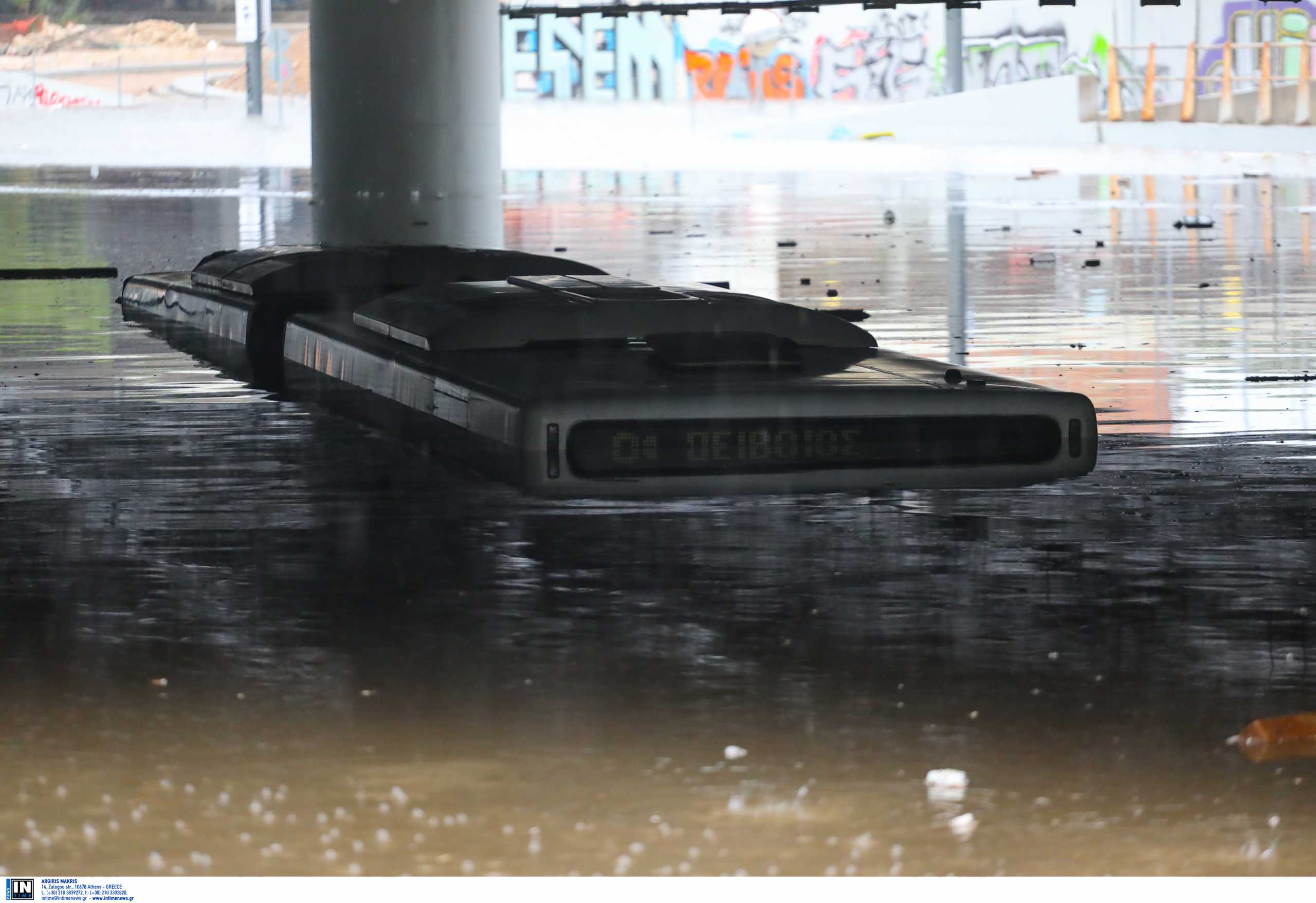 Κακοκαιρία Μπάλλος: «Βυθίστηκε» λεωφορείο στην παλιά Ποσειδώνος