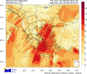 Άνεμοι: Από βόρειες διευθύνσεις 4 με 6 και στα νότια 7 μποφόρ.