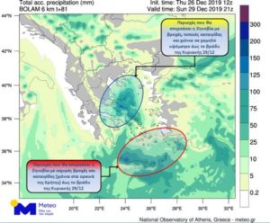Η Ζηνοβία αναμένεται να έχει αμιγώς χειμερινά χαρακτηριστικά και να επηρεάσει, όπως φαίνεται στο χάρτη 1, κυρίως τα ανατολικά και νότια ηπειρωτικά τμήματα της χώρας, καθώς επίσης το Κεντρικό, Ανατολικό και Νότιο Αιγαίο και την Κρήτη από το Σάββατο 28/12 έως τη Δευτέρα 30/12.
