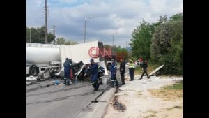 Οι πλη­ρο­φο­ρί­ες ανα­φέ­ρουν πως από το τρο­χαίο εγκλω­βί­στη­καν συνο­λι­κά τρία άτο­μα, ενώ υπάρ­χει και διαρ­ροή καυ­σί­μων από το βυτιοφόρο.