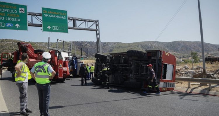 Τροχαίο ατύχημα στη Νέα Μάκρη: Ανετράπη πυροσβεστικό όχημα, δύο σοβαρά τραυματίες