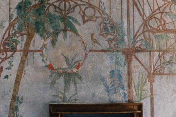 Μόλις ανοί­γει η ξύλι­νη και προ­στα­τευ­μέ­νη από κάγκε­λα ασφα­λεί­ας πόρ­τα της αίθου­σας που βρί­σκε­ται στο ισό­γειο του κτι­ρί­ου «Ν. Γύζης» ξεδι­πλώ­νε­ται μπρο­στά μας μια άγνω­στη και πολύ­τι­μη ιστο­ρία. Για πολ­λά χρό­νια το δια­τη­ρη­τέο αυτό κτί­ριο χρη­σι­μο­ποιού­νταν ως παράρ­τη­μα ψυχια­τρι­κής κλι­νι­κής, ενώ κατά και­ρούς λει­τουρ­γού­σε και ως βαφείο επίπλων…