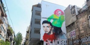 Μεγάλη τοιχογραφία με το πρόσωπο του Ζακ Κωστόπουλου στα Εξάρχεια