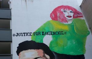 Πάνω στην τοιχογραφία υπάρχει και ένα μήνυμα στα αγγλικά, το οποίο γράφει «Justice for Zak/Zackie Oh», δηλαδή «δικαιοσύνη για τον Ζακ και την Ζάκι Ω».
