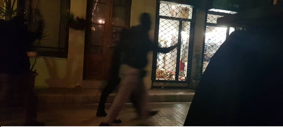 Έντρομοι κατοίκοι, τουρίστες με παιδιά, επιχειρηματίες και άτομα που διασκέδαζαν στα νυχτερινά μαγαζιά της περιοχής είδαν μια ομάδα περίπου 100 κουκουλοφόρων να εμφανίζονται στην περιοχή και να αρχίζουν να σπάνε καταστήματα.