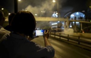 Όπως και πέρ­σι, έτσι και φέτος, μόλις ακού­στη­κε το «Χρι­στός Ανέ­στη» και άρχι­σαν να χτυ­πούν οι καμπά­νες, ταυ­τό­χρο­να με τα βεγ­γα­λι­κά οι μολό­τοφ έπε­σαν βρο­χή στον κεντρι­κό δρό­μο και από τις δύο πλευ­ρές της γέφυρας.