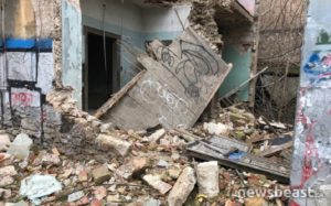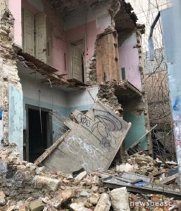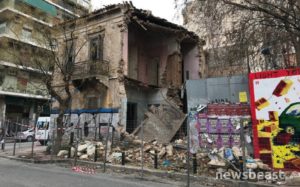 Ο φωτογραφικός φακός του newsbeast.gr κατέγραψε σήμερα ακόμα ένα τέτοιο σπίτι στη συμβολή των οδών Κεραμεικού και Θερμοπυλών, στον Κεραμεικό. Μεγάλο μέρος του έχει καταρρεύσει εδώ και καιρό, όπως φαίνεται στις φωτογραφίες, και πάνω από τα συντρίμμια τοποθετήθηκε συρματόπλεγμα. Άγνωστο είναι όμως τι θα γίνει αν και όταν πέσει και το υπόλοιπο κτίσμα.