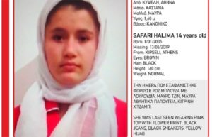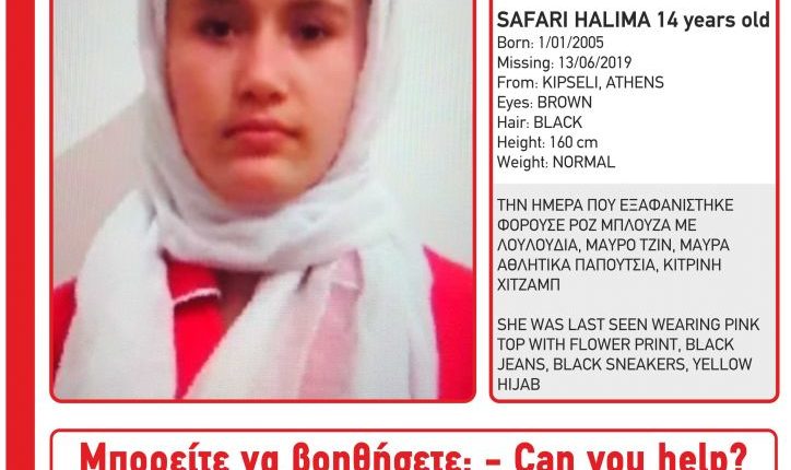 Εξα­φα­νί­στη­κε την Πέμ­πτη από το σπί­τι της στην Κυψέ­λη η 14χρονη Χαλι­μά Σαφά­ρι, 14 ετών, αφγα­νι­κής κατα­γω­γής, για την οποία εξε­δό­θη Missing Alert από το Χαμό­γε­λο του Παιδιού.