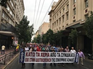 Με κεντρικά συνθήματα «καταργούν τις ΣΣΕ, χειραγωγούν τα συνδικάτα, αντιδρούμε, απεργούμε», καθώς επίσης και «κάτω τα χέρια από τα συνδικάτα, όχι στην ιδιωτικοποίηση της επικουρικής ασφάλισης», οι διαδηλωτές συγκεντρώθηκαν νωρίτερα στην πλατεία Κλαυθμώνος και κατευθύνονται προς τη Βουλή.