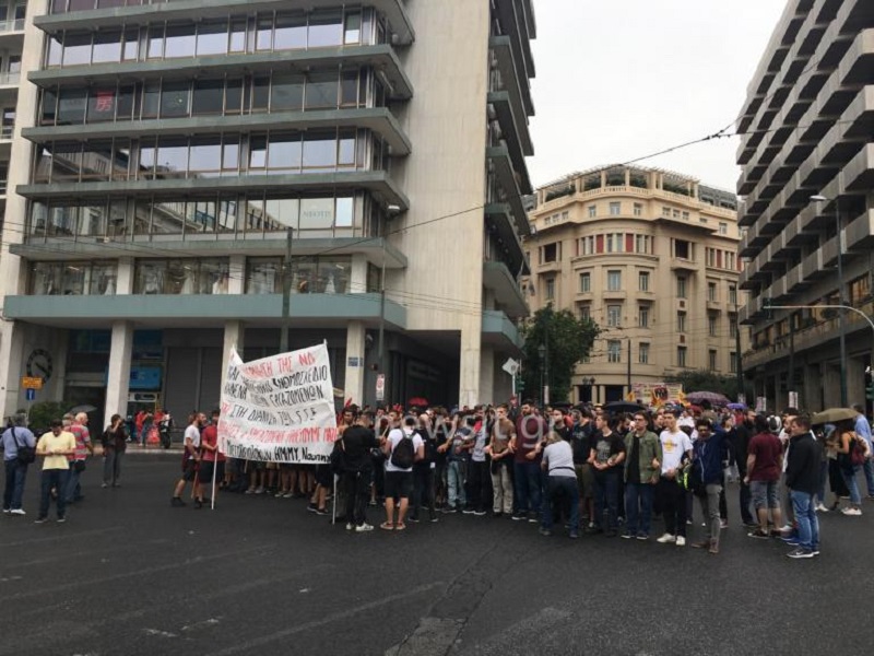 Υπό καταρρακτώδη βροχή γίνονται οι πορείες και οι συγκεντρώσεις στο κέντρο της Αθήνας στο πλαίσιο της 24ωρης απεργίας που έχουν κηρύξει τα συνδικάτα.