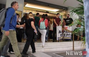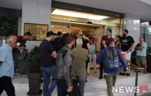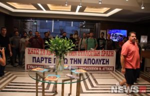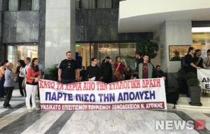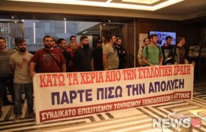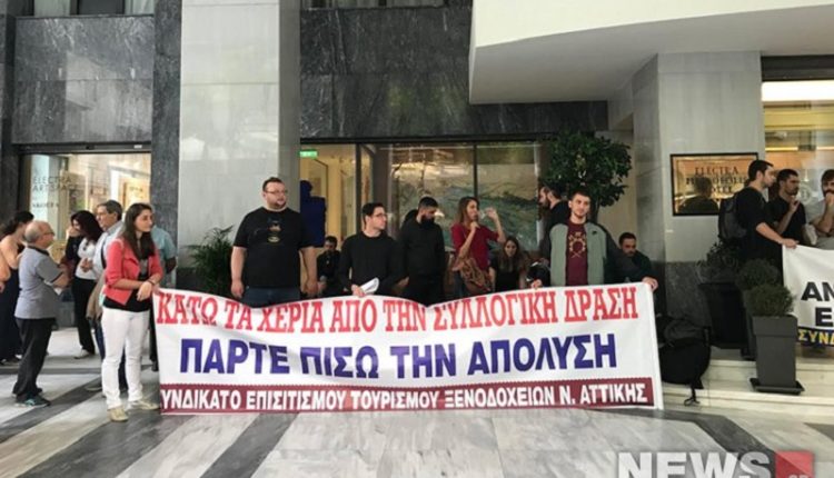 Διαμαρτυρία σε ξενοδοχείο στο κέντρο της Αθήνας πραγματοποίησε το Συνδικάτο Επισιτισμού — Τουρισμού — Ξενοδοχείων του νομού Αττικής.