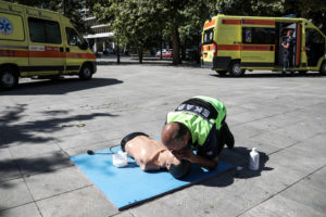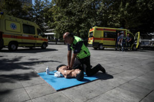 Επίδειξη Πρώτων Βοηθειών βασικής υποστήριξης της ζωής, πραγματοποίησαν σήμερα Σάββατο 14 Σεπτεμβρίου, διασώστες του ΕΚΑΒ στο κέντρο της Αθήνας.