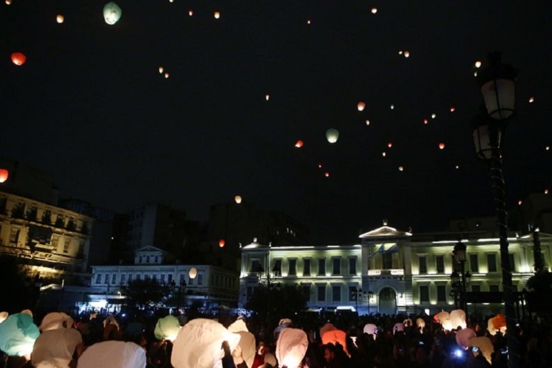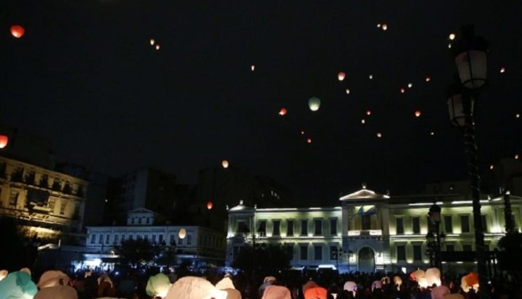 Εκατοντάδες χάρτινα φαναράκια πέταξαν αναμμένα στον αθηναϊκό ουρανό