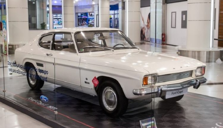 Δίπλα του, ένα Ford Capri που παρουσιάστηκε για πρώτη φορά στο ευρωπαϊκό κοινό το 1969 και κάπως έτσι γεννήθηκε ένα ακόμα θρυλικό αυτοκίνητο με το λογότυπο της εταιρείας του Μπλε Οβάλ.