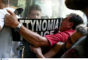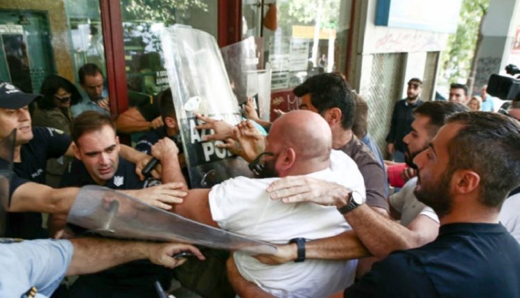 Πλειστηριασμοί: Ένταση και μικροεπεισόδια έξω από συμβολαιογραφείο στο κέντρο της Αθήνας