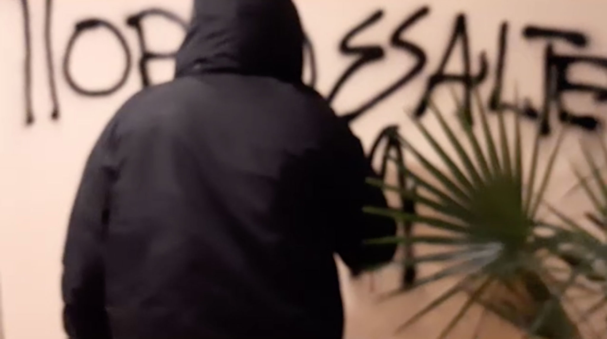 Αργά το χθες το βράδυ, ομάδα μελών του Ρουβίκωνα βρέθηκαν στην πολυκατοικία όπου διαμένει ο Άρης Πορτοσάλτε, πέταξαν φέιγ βολάν με υβριστικό περιεχόμενο και έγραψαν συνθήματα στους τοίχους.