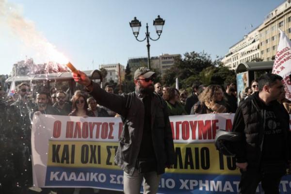 Στο πλευ­ρό των εργα­ζο­μέ­νων δια­δή­λω­σαν εργα­ζό­με­νοι από σωμα­τεία και φορείς της Στε­ρε­άς και της Εύβοιας, αλλά και της Αττι­κής, που έστει­λαν μήνυ­μα ταξι­κής αλλη­λεγ­γύ­ης, ενώ η πορεία στη δια­δρο­μή από την Ομό­νοια στο Σύνταγ­μα πύκνω­νε όλο και περισ­σό­τε­ρο, καθώς έμπαι­ναν οι προ­συ­γκε­ντρώ­σεις από τα σωμα­τεία και τους φορείς της Αττικής.