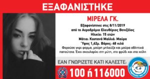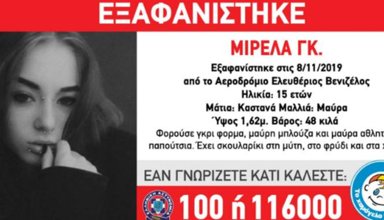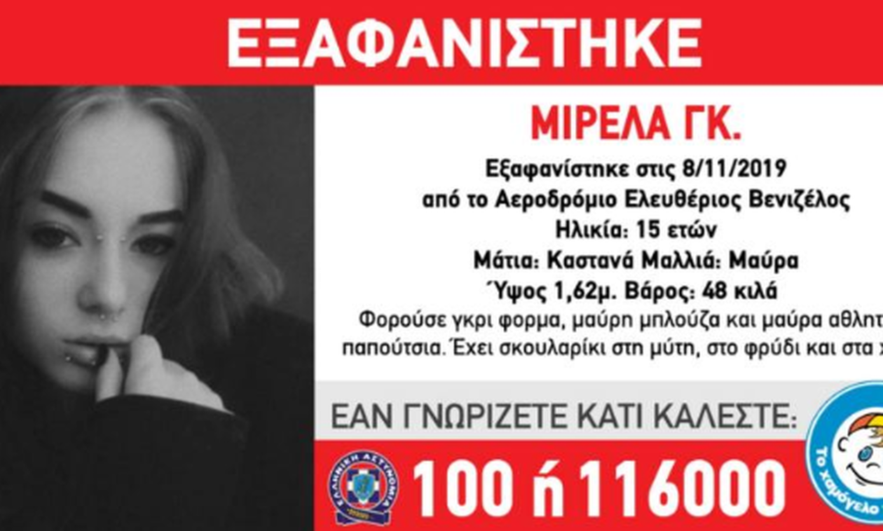 Amber Alert: Συναγερμός έχει σημάνει στην ΕΛ.ΑΣ. για την εξαφάνιση της 15χρονης Μιρέλας, τα ίχνη της χάθηκαν από το αεροδρόμιο Ελ.Βενιζέλος.