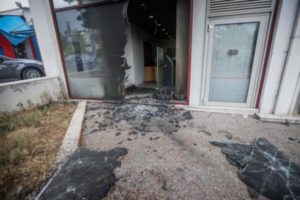 Την ίδια ώρα, 03:00, που ομάδα αγνώστων εξαπέλυε επίθεση σε υποκατάστημα τράπεζας, στη λεωφόρο Αθηνών 364 στο Χαϊδάρι, σπάζοντας με βαριοπούλες τα τζάμια και το ΑΤΜ, ενώ πέταξαν και γκαζάκια στην είσοδο, μια άλλη ομάδα προξένησε φθορές με βαριοπούλες στους υαλοπίνακες και την οθόνη του ΑΤΜ, σε υποκατάστημα άλλης τράπεζας, στην οδό Φορμίωνος 141 στο Βύρωνα.