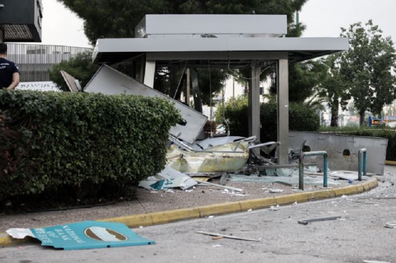 Από τη έκρηξη προκλήθηκαν μεγάλες ζημιές στο ΑΤΜ και την πρόσοψη του υποκαταστήματος.