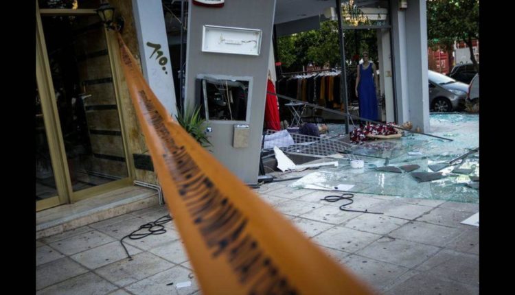 Προκλήθηκαν ζημιές στο ΑΤΜ καθώς και στην πρόσοψη του σούπερ μάρκετ.