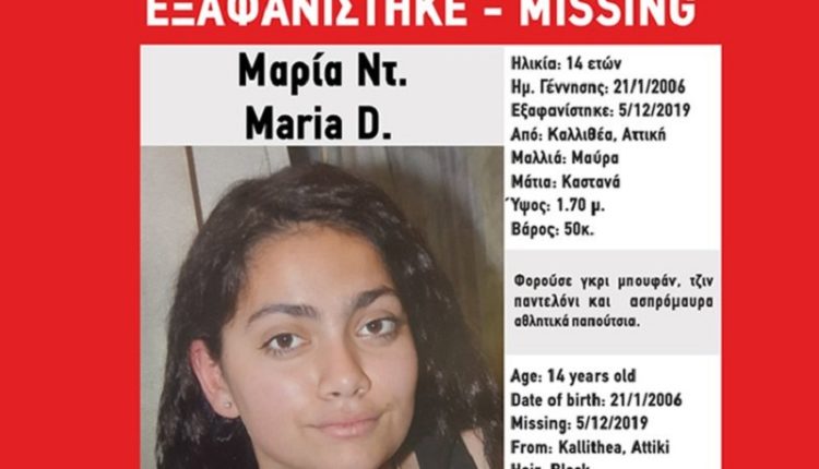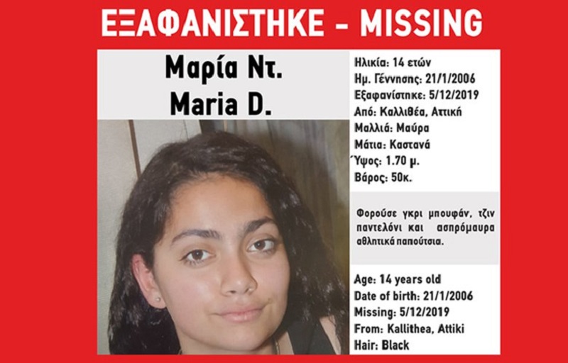 Missing Alert ενεργοποίησε «Το Χαμόγελο του Παιδιού» για την εξαφάνιση της 14χρονης Μαρία Ντ. από την περιοχή της Καλλιθέας Αττικής.