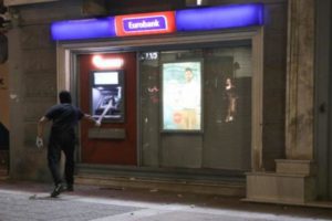 Τα άτομα με καλυμμένα τα πρόσωπά τους έβαλαν φωτιές σε κάδους απορριμμάτων και προκάλεσαν φθορές σε καταστήματα στην Ηρώων Πολυτεχνείου.