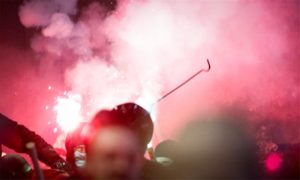 Περίπου 30 άτομα με μαύρα ρούχα, κράνη, μαχαίρια και ρόπαλα εισέβαλαν στο γήπεδο και, αφού προκάλεσαν ζημιές, κατέβασαν πανό, με αποτέλεσμα να υπάρξει διακοπή του αγώνα. Στην αναμέτρηση δεν υπήρχε αστυνομική δύναμη.