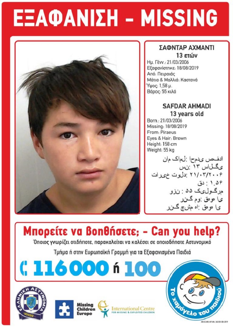 Ο 15χρονος Χαϊ­ντάρ Αχμα­ντί κάλε­σε μόνος του στην Ευρω­παϊ­κή Γραμ­μή για τα Εξα­φα­νι­σμέ­να Παι­διά 116000, ώστε να ζητή­σει βοή­θεια, ενώ βρι­σκό­ταν αρκε­τές ημέ­ρες μακριά από ασφα­λές πλαί­σιο και είχε ταλαι­πω­ρη­θεί αρκετά.