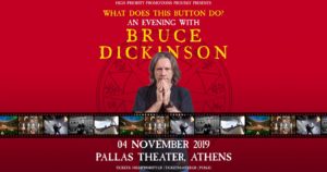 Η High Priority Promotions παρουσιάζει ένα μοναδικό one-man show με πρωταγωνιστή την φωνή των Iron Maiden, Bruce Dickinson! Σημειώστε το από τώρα: Δευτέρα 4 Νοεμβρίου - Θέατρο Παλλάς, Αθήνα