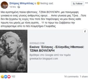 Έφυγε από τη ζωή η ηθοποιός Τζίνα Βούλγαρη