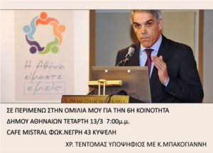 Ομιλία του Χρήστου Τεντόμα την Τετάρτη για το Δήμο Αθηναίων
