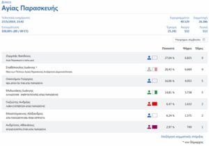 Μεγάλη μάχη διεξήχθη μεταξύ του Βασίλειου Ζορμπά που βρέθηκε στην πρώτη θέση με 27,04% και 6.825 ψήφους έναντι του Γιάννη Σταθόπουλου που έλαβε 26,42% και 6.669 ψήφους.