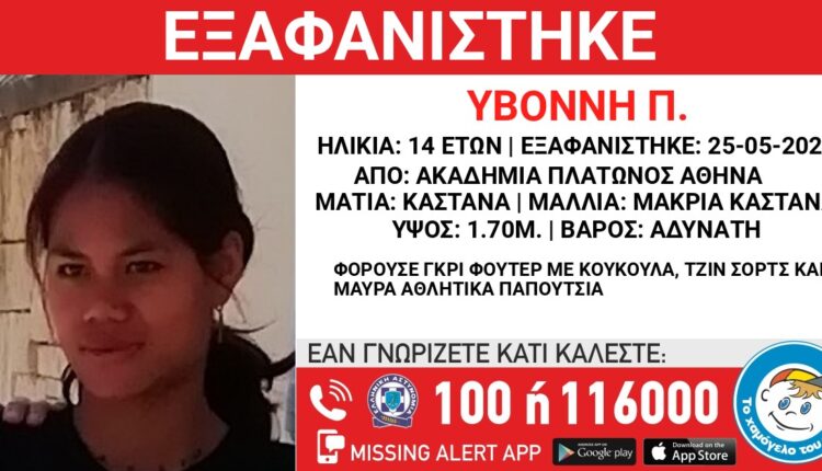 Missing Alert: Εξαφανίστηκε η 14χρονη Υβόννη από την Ακαδημία Πλάτωνος Κοινωνικά Του iloveathens Τις Ιούν 5, 2023 Στις 25/05/2023, μεσημβρινές ώρες εξαφανίστηκε από την περιοχή της Ακαδημίας Πλάτωνος στην Αθήνα, η Υβόννη Π., 14 ετών… περισσότερες πληροφορίες εδώ - Διαφήμιση -- Διαφήμιση -- Διαφήμιση - ΑΝΑΚΟΙΝΩΣΗΕΞΑΦΑΝΙΣΗΧΑΜΟΓΕΛΟ Πλήκτρο Κοινοποίησης